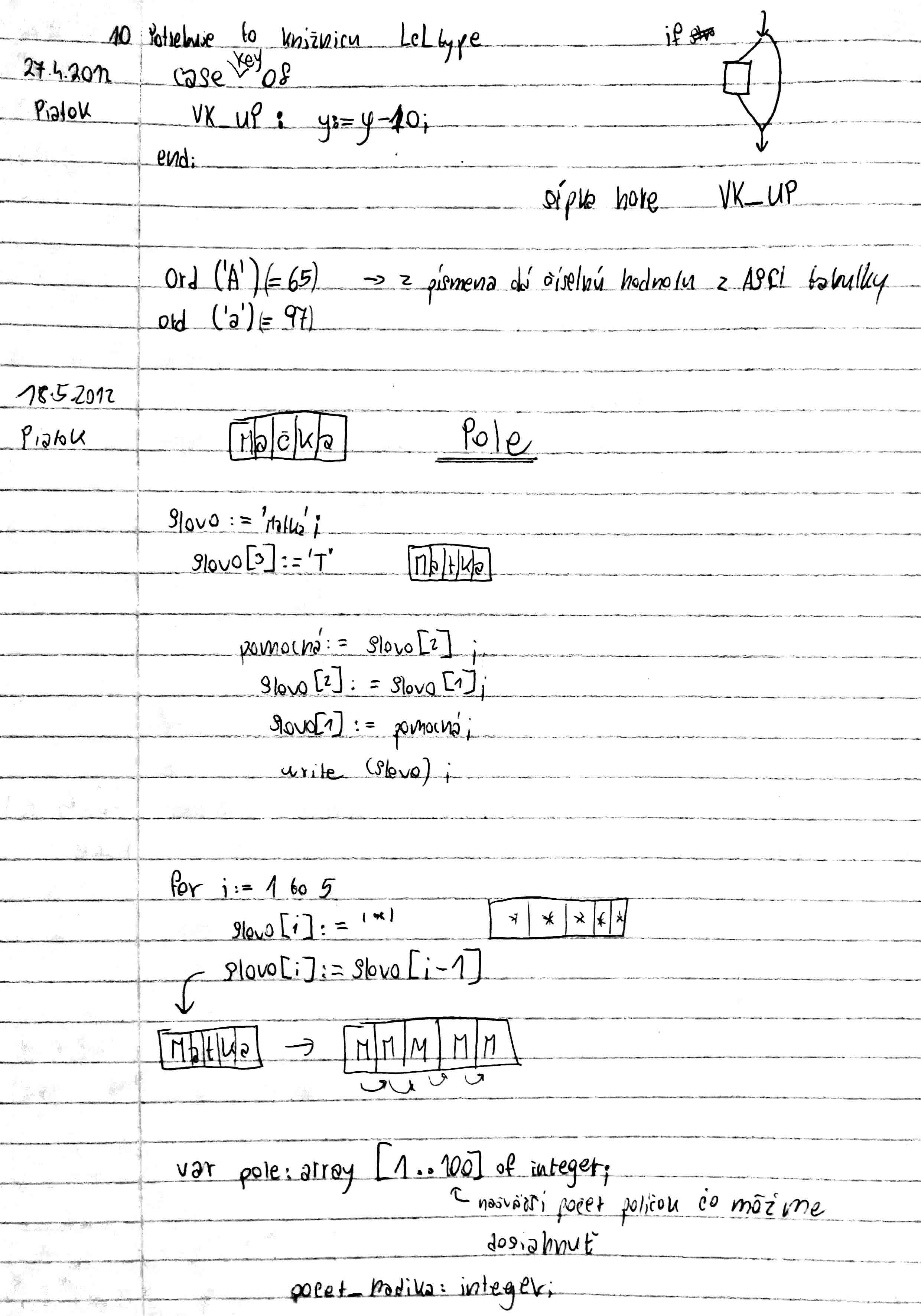 práca so šípkami, case