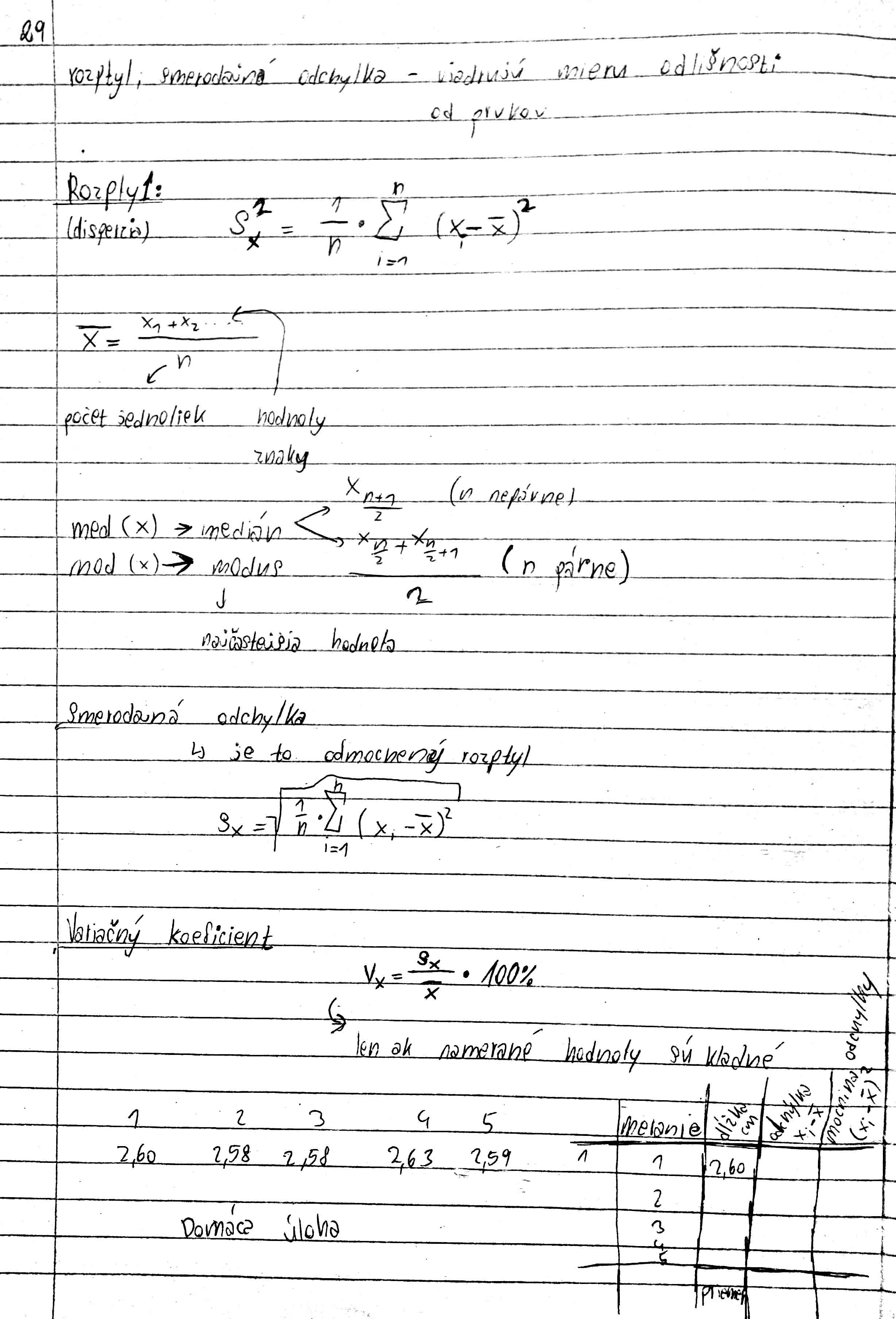 - rozptyl, smerodajná odchylka, variačný koeficient
